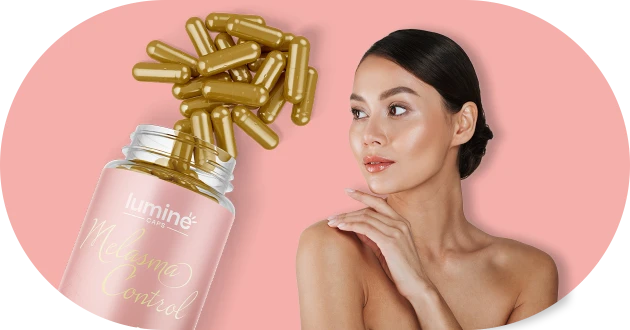 Luminé Caps – Melasma Control é o único no mercado que une ativos poderosos que atuam de dentro pra fora, combatendo a raiz do melasma e prevenindo o surgimento de novas manchas.